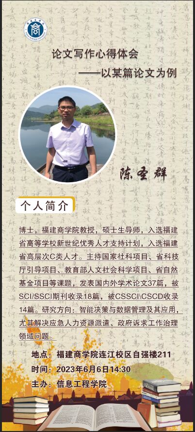 陈圣群老师从自身的论文写作经验出发,强调了论文写作对于教师的重要性。他以“基于深度增强学习的个性化动态促销”论文为例,围绕选题、论文的结构、数据的获取与分析等方面作了分析,从引言、文献回顾与讨论、方法效果评估、拓展分析与稳健性检验、讨论与结论等几个角度进行了详细讲解。他指出设计题目的三大要点,一是有吸引力,二是能激发共鸣,三是重点突出。讲座内容丰富、语言生动有趣,与会教师深受启发。