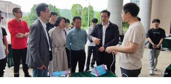 在毕业设计作品展现场,公司党政领导向蒲文庆副董事长介绍了本次作品展的意义和展出作品总体情况。在毕业设计作品前,校领导逐一听取了作品完成人对作品的介绍,观看了作品功能展示,并与作品完成人就作品的技术、实用性和可改进方向进行了深入地交流与讨论。校领导充分肯定同学们的创新意识,并就同学们的分析和解决问题的能力进行了赞扬,同时也鼓励同学们继续将理论联系实际,加强实际调研、突出作品特色、提高系统的实用性,争取能产业化。同时,校领导希望公司以优秀毕业作品展为契机,搭建好师生交流平台,创新机制,营造良好的学习和创新氛围,不断提高人才培养质量。