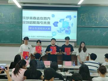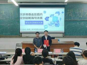 比赛于晚上七点正式开始,首先由团委老师致辞,强调将个人生涯成长与国家和社会的发展有机结合,同时聚焦生涯发展目标,以扎实的调研与实践不断增强自我探索和行业认知,用行动点亮前行的征程。随后,参赛选手们依次登台展示各自精心准备的汇报材料,围绕自身的职业发展规划、实现职业目标的具体行动实践、求职准备情况等进行了精彩展示,他们的职业目标清晰明确,成长行动内容丰富,展现了良好的综合素质、求职实战能力和发展潜力。每一位选手展示后,评委们对选手们的表现给予了高度评价,认为他们在比赛中充分展现了自己的专业素质和职业规划能力。同时,评委们也指出了选手们在本次比赛中需要进一步完善和改进的地方,并为他们的未来发展提供了宝贵建议。最后进入颁奖环节,获奖选手依次上台领取奖品后与各位评委合影留念。