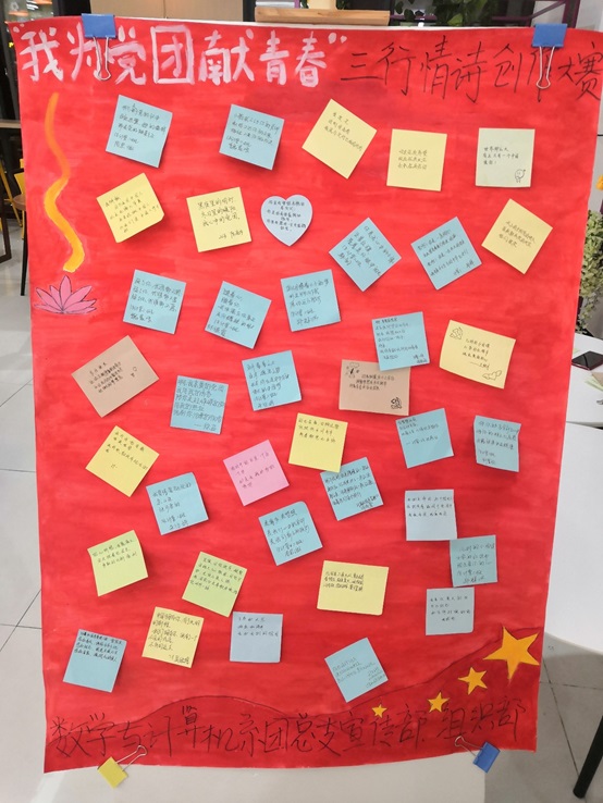 在最终的结果里,选出了30份最具特色的参赛作品。在本次活动中,同学们以最简短的三行语言表达出了他们对于“我为党团献青春”这一主题的情感,也体现出了他们的创作灵感、参赛选手也借此锻炼了自己的写作水平。