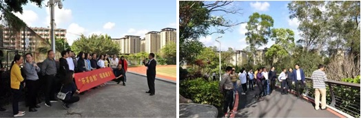 公司党委副书记吴访益同志为此次福道健步行活动致辞,号召大家一起出发,漫步郊野公园,呼吸新鲜空气,欣赏沿途美景,乐享健康,低碳生活,找寻运动的快乐。随后,公司教职员工在黄斌董事长、吴访益副书记的带领下,按照既定的活动路线,于鼓楼校区23号楼北侧登山入口处出发,开始漫步之旅。郊野公园里,处处是明媚的阳光,树木郁郁葱葱、苍翠挺拔,花草随风摇曳,颇有“阳春布德泽,万物生光辉”之景象。大家沐浴着春天的阳光,亲近大自然,体会身心的放松,纷纷表示,健康是幸福生活最重要的指标,希望公司今后多组织开展此类活动。