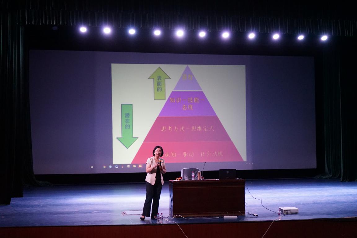 吴贵明教授在报告会上与师生们一起重温“两个一百年”奋斗目标。她说,当前我国正处于实现“两个一百年”奋斗目标的关键时期,正是广大青年奋发有为,实现人生理想和自我价值的美好新时代。希望每个人都要主动担负起新时代赋予当代青年的重任,珍惜大学时光,扣好人生第一粒纽扣,认真学习,努力实践,不断提高思想水平,优化知识结构,树立正确的世界观、人生观和价值观,用奋斗开启美好人生路。她还说,人生道路是条单行道,三到四年的大学时光看似很长,但真正用于学习的时间并不多,每个人都必须珍惜时光,知行合一,有目标、有思考、有坚持地完成学习任务,通过勤奋学习,求得真学问,练就真本领,做一名实干家,不给美好的大学时光留下遗憾。